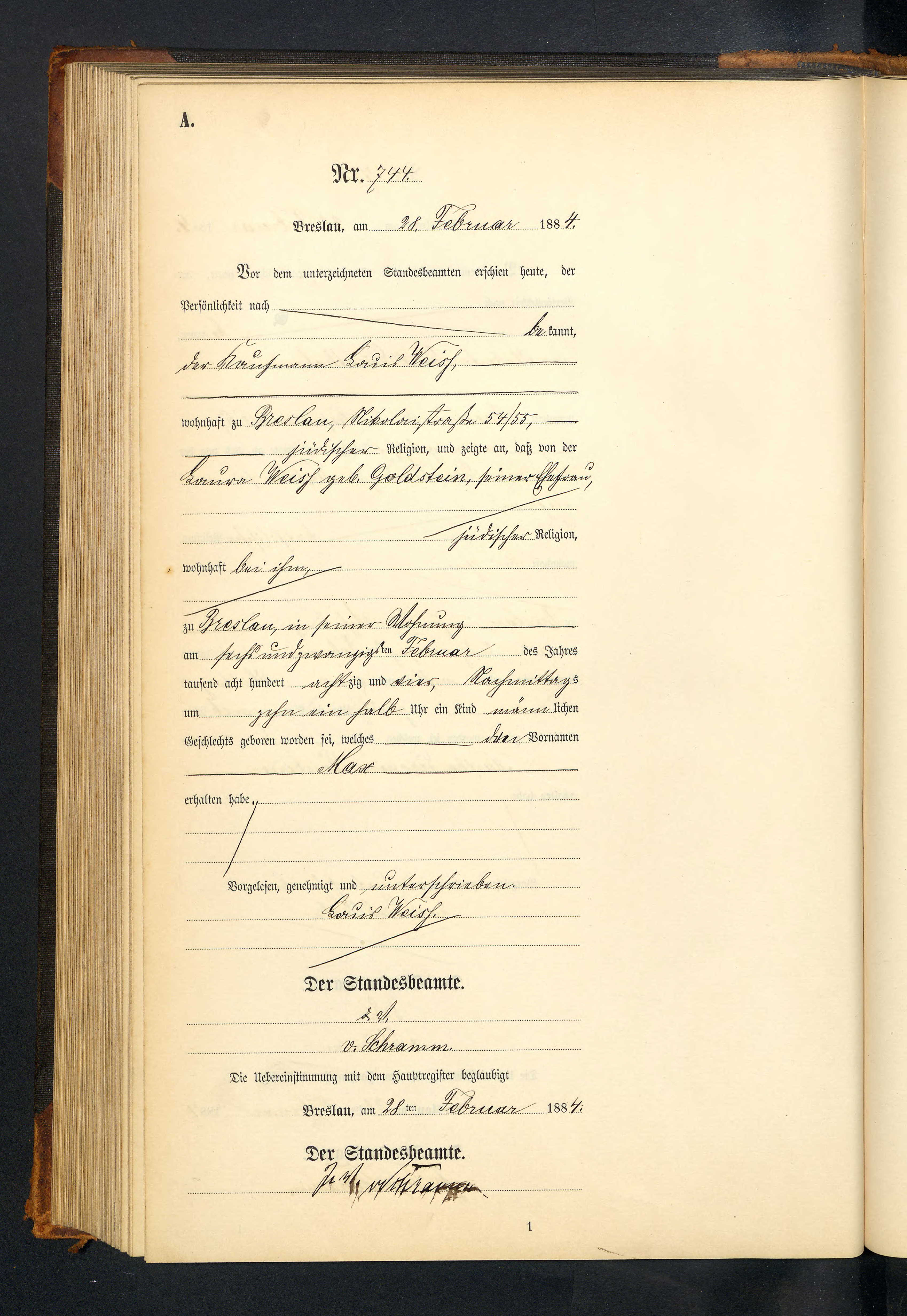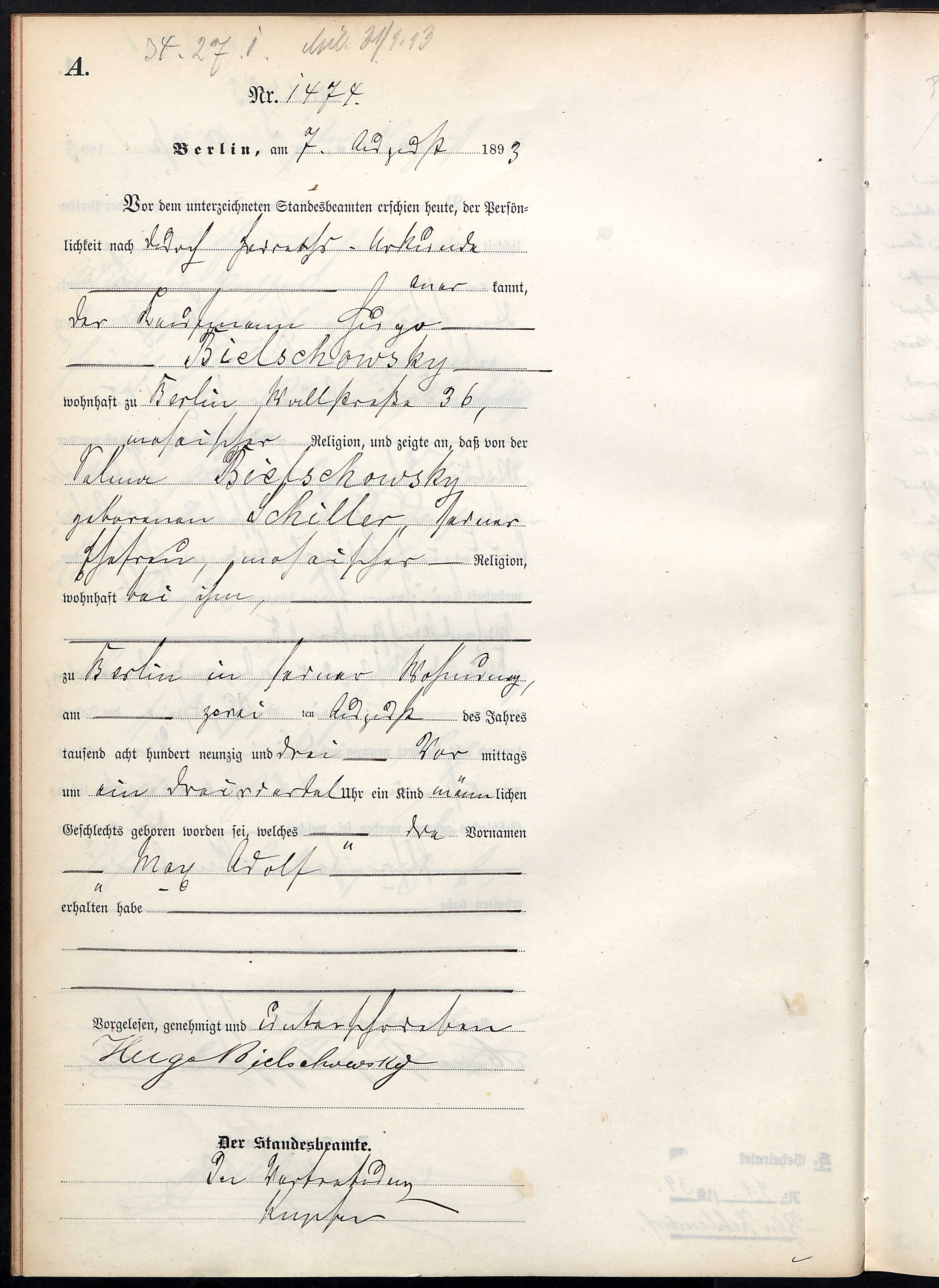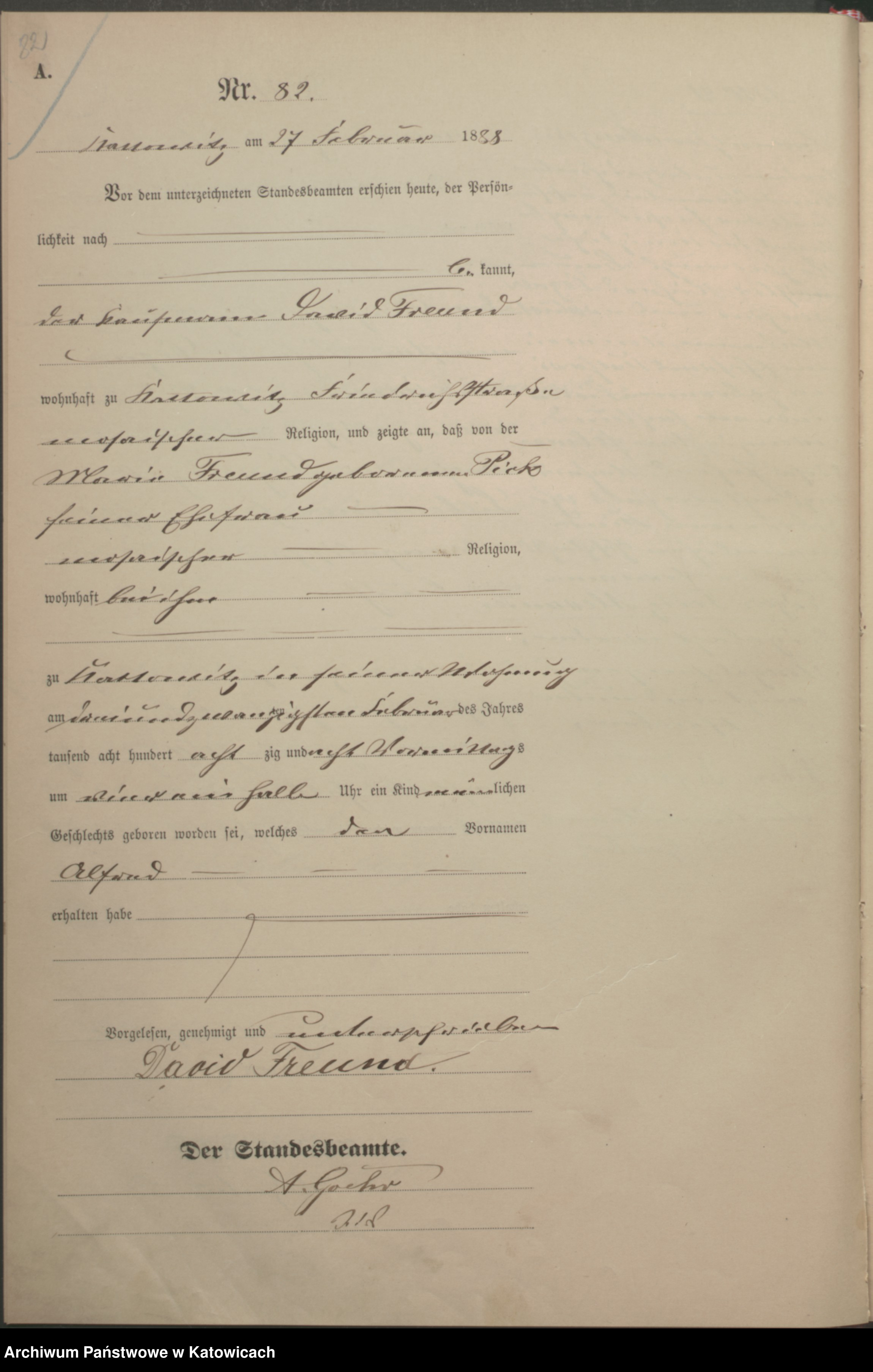 Alfred Kristeller (26.12.1874 – 31.01.1893)