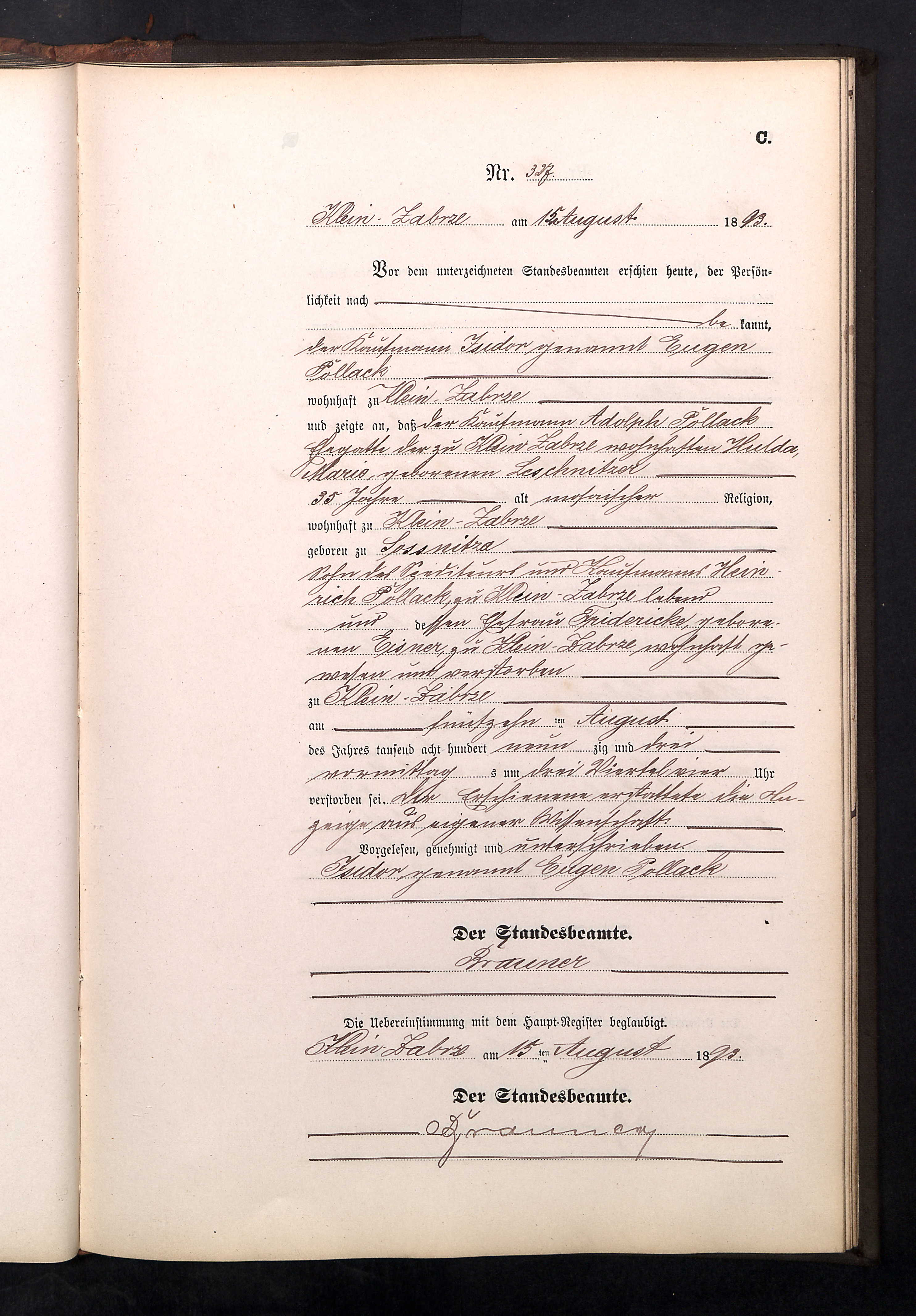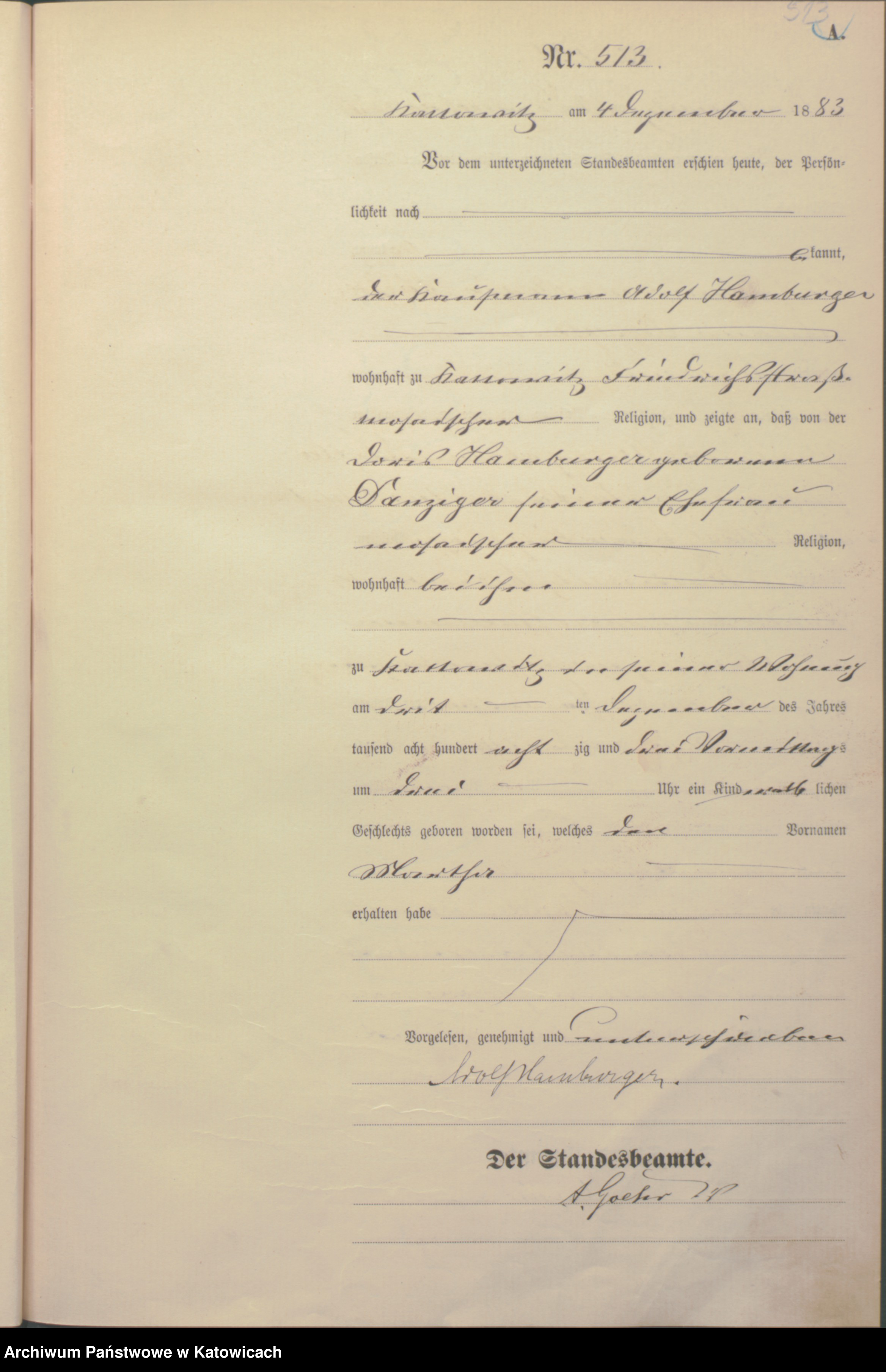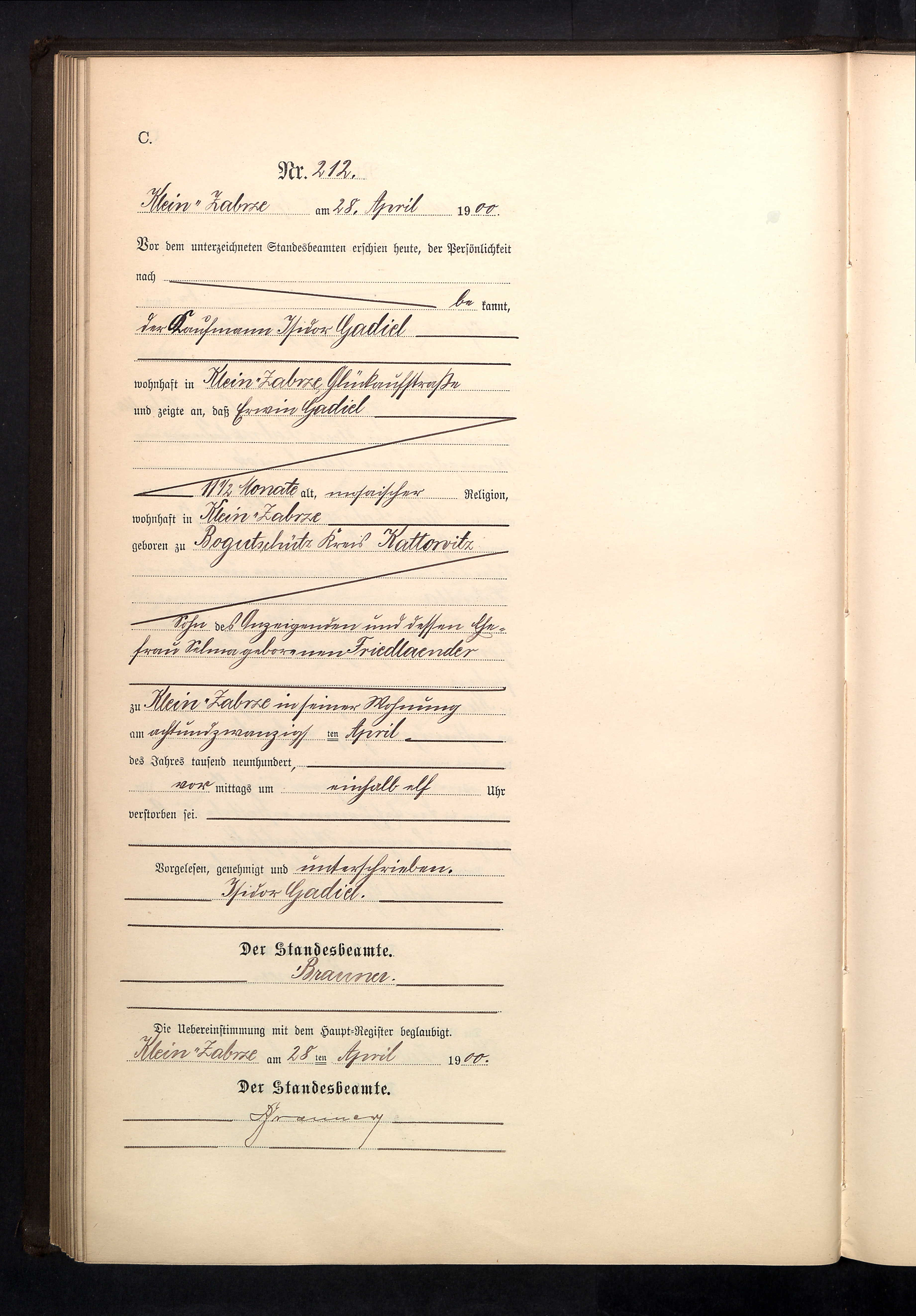 [stillborn son] Danziger (06.11.1889 – 06.11.1889)