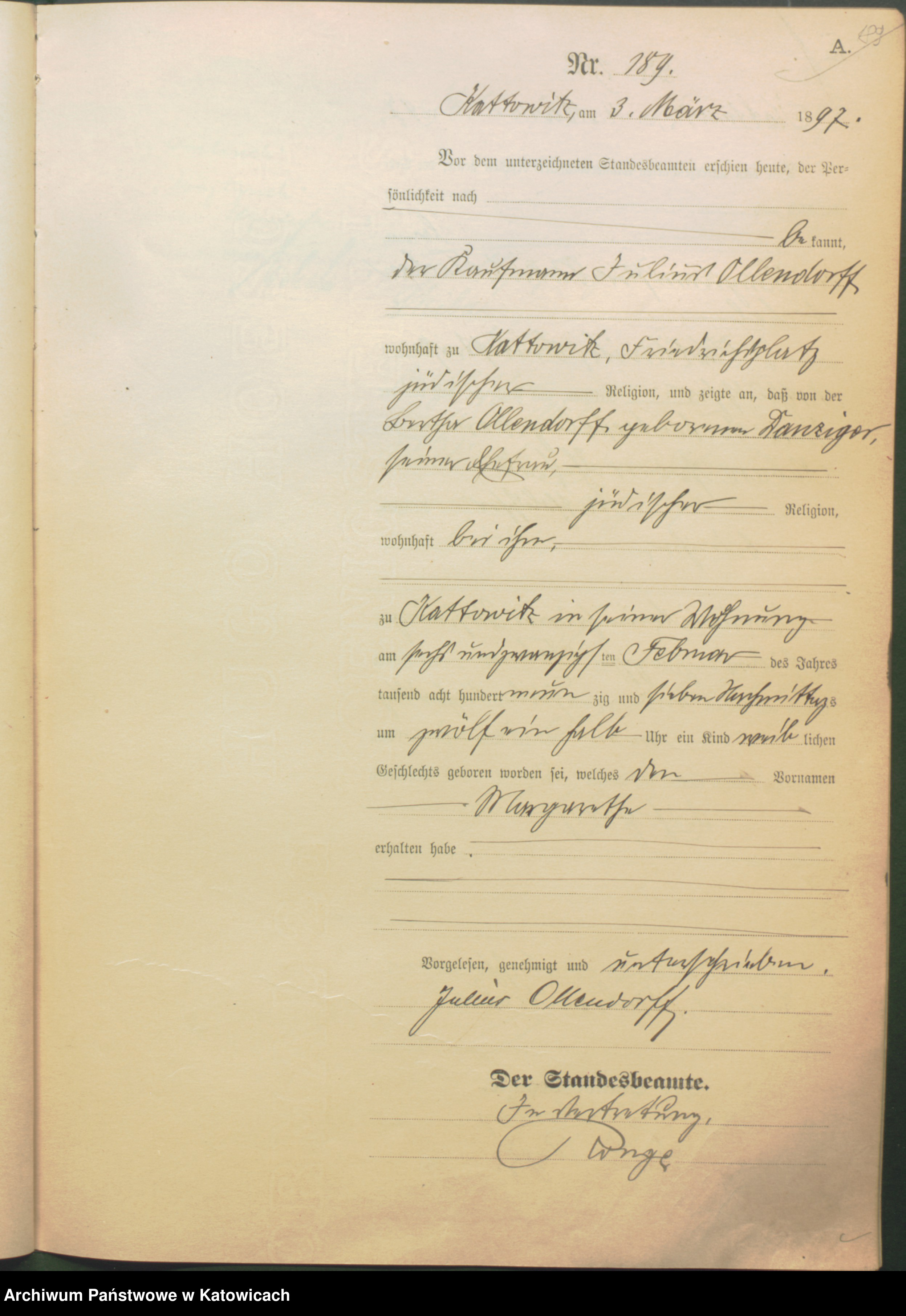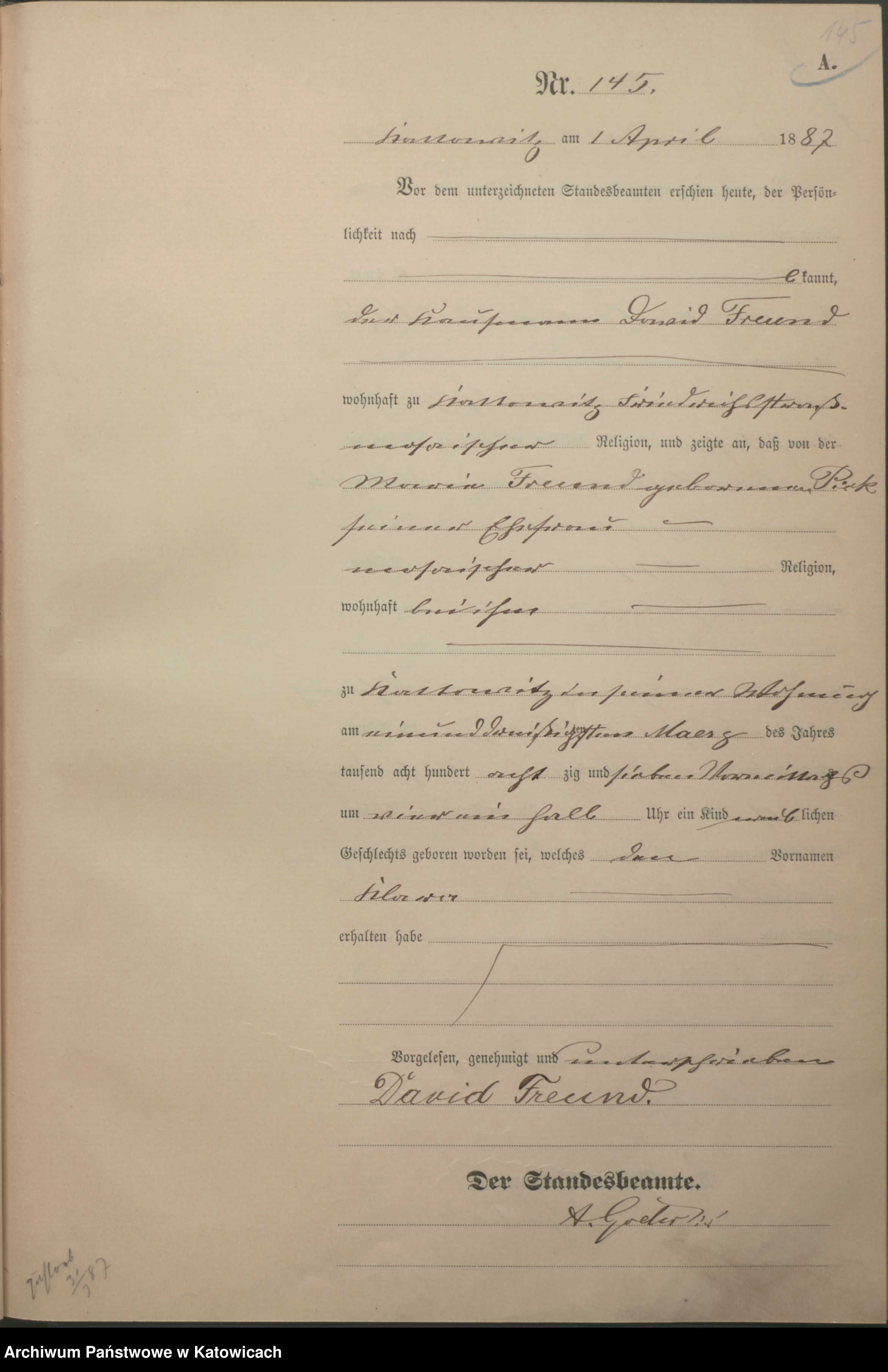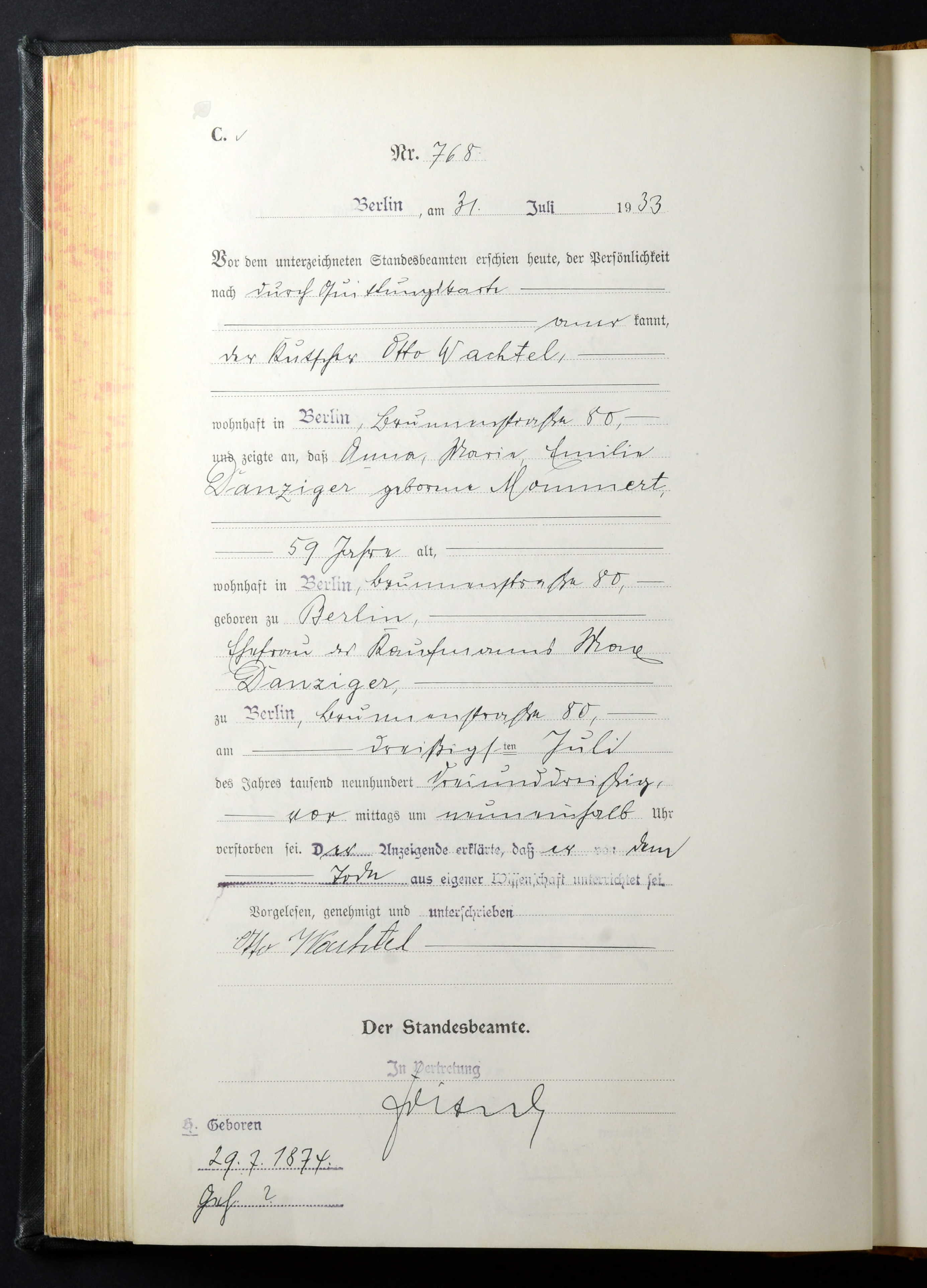 [stillborn son] Danziger (06.11.1889 – 06.11.1889)