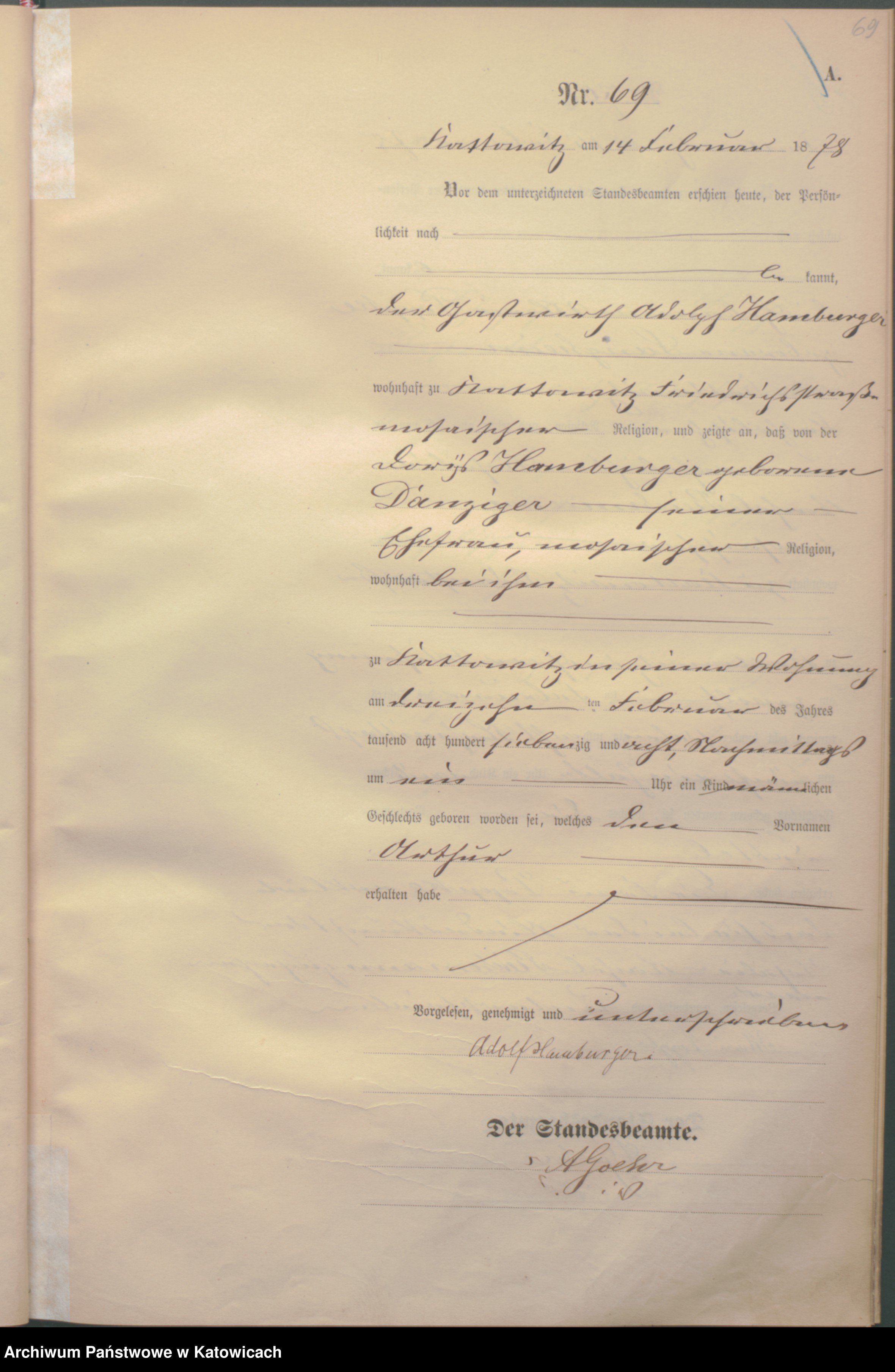 Adolf Gerstel (14.02.1893 – 10.01.1894)