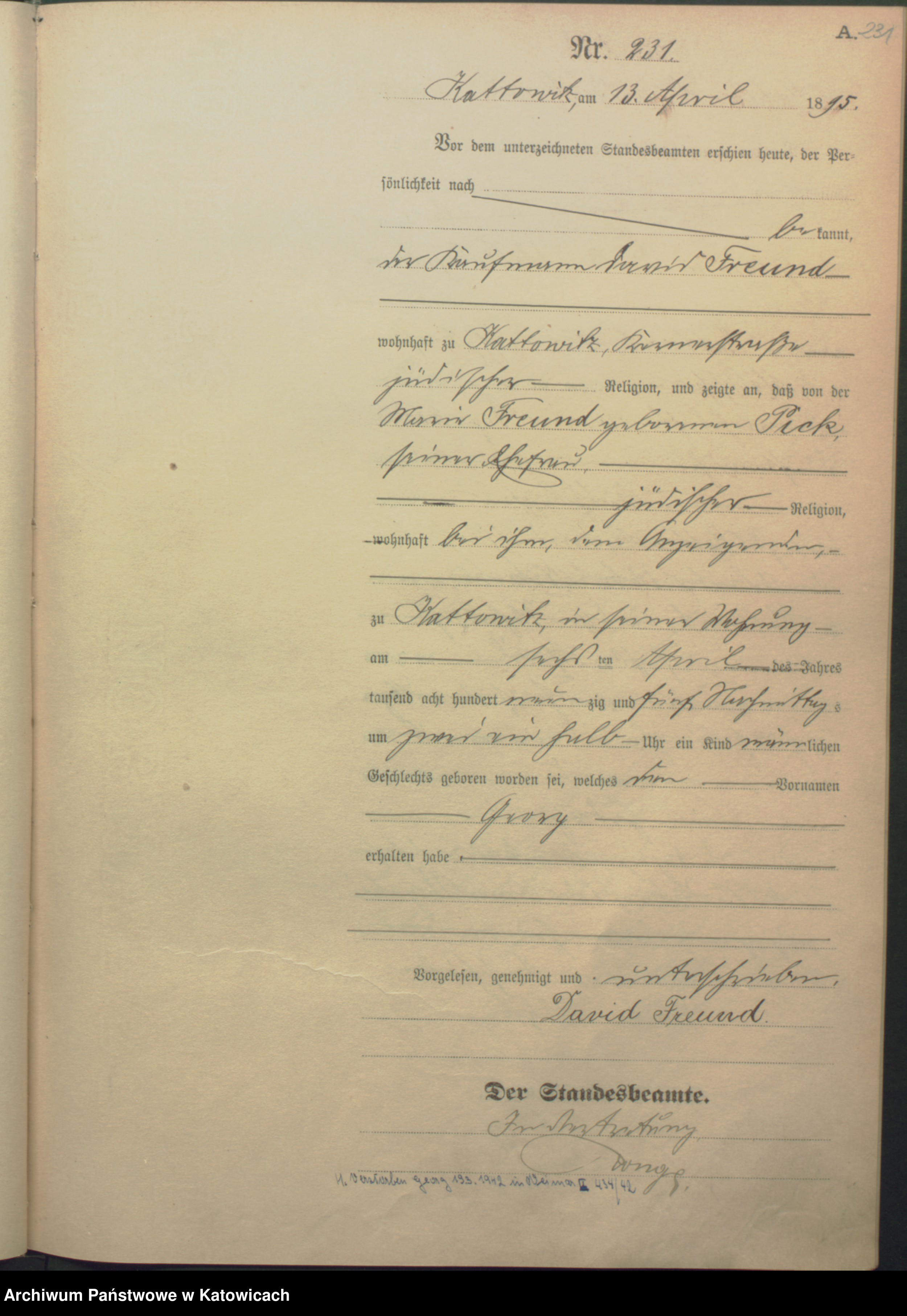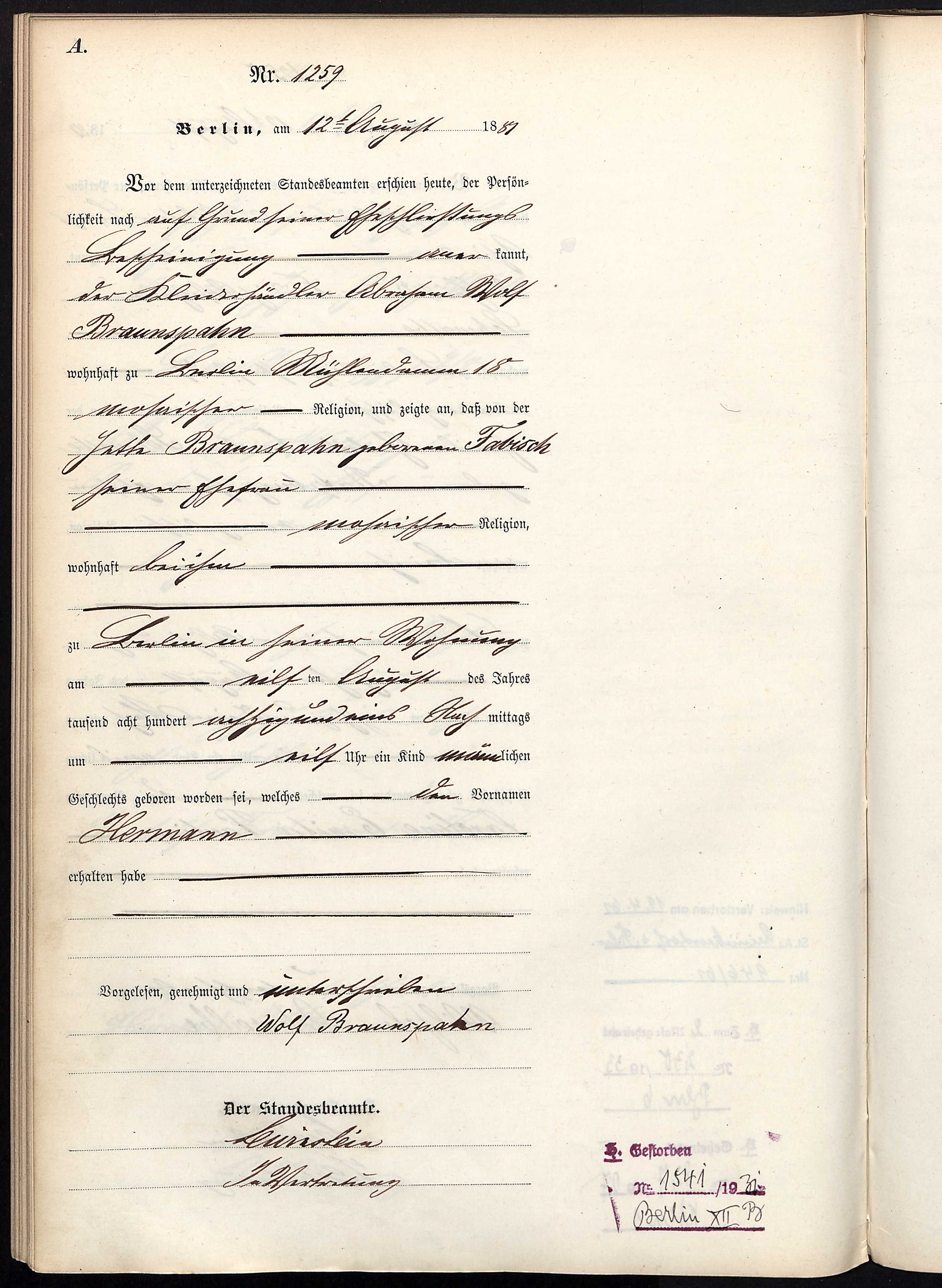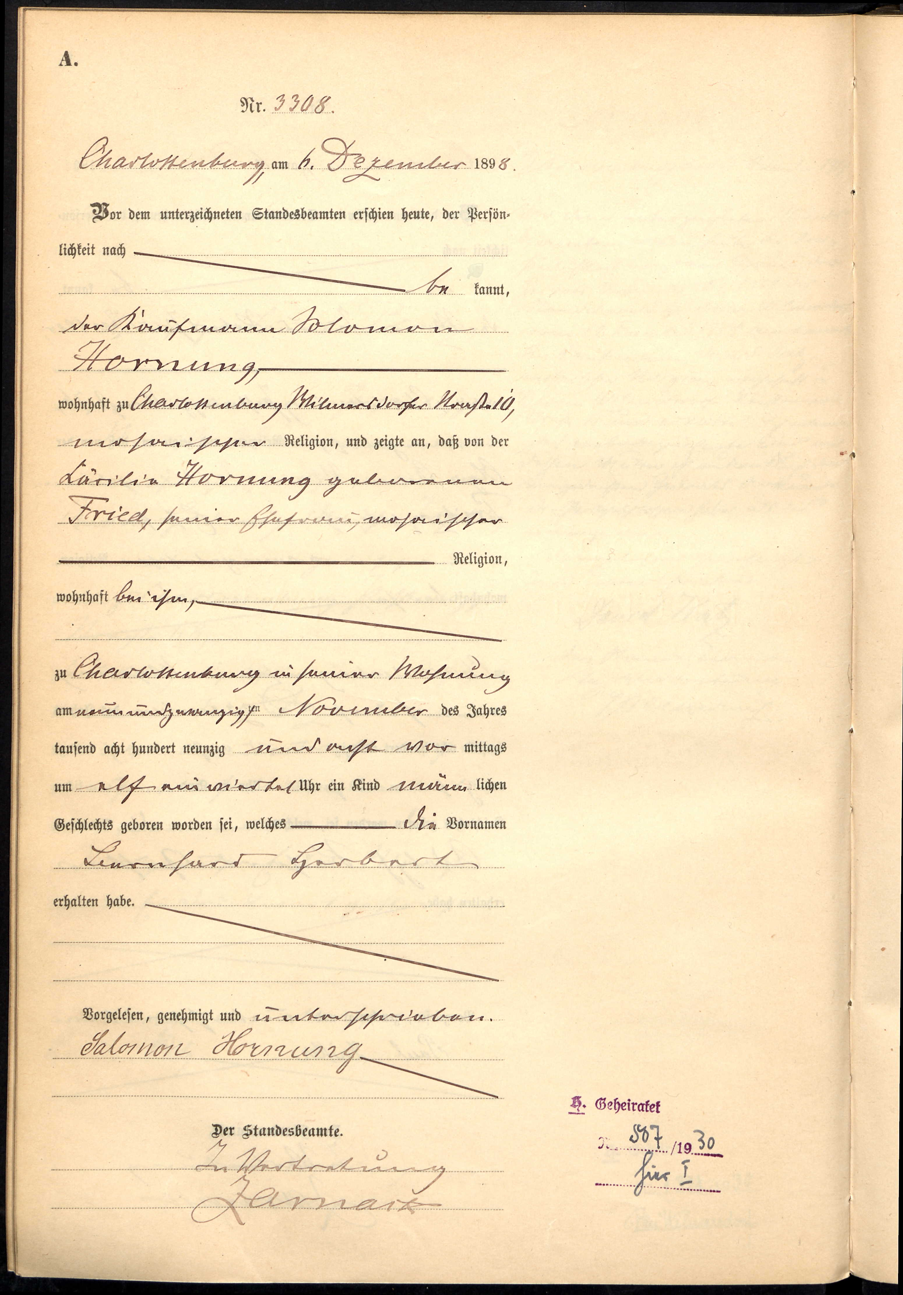 [stillborn son] Landsberger (13.11.1894 – 13.11.1894)