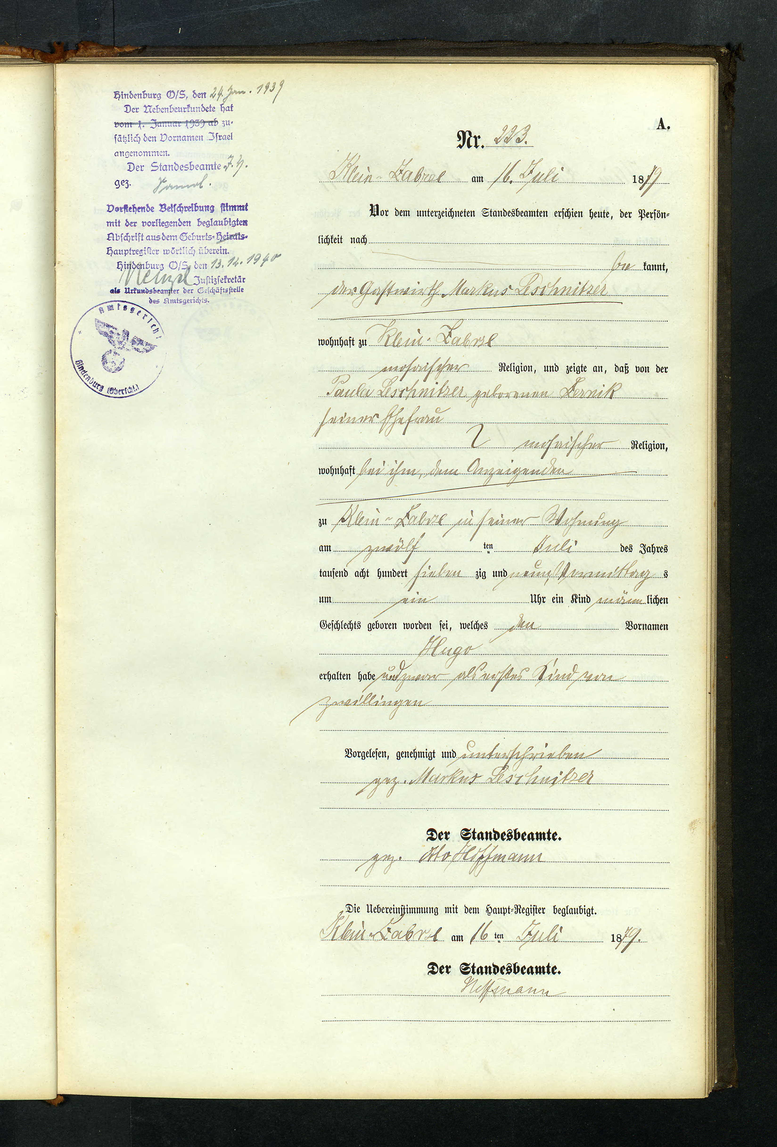 [stillborn son] Jereslaw (01.12.1877 – 01.12.1877)