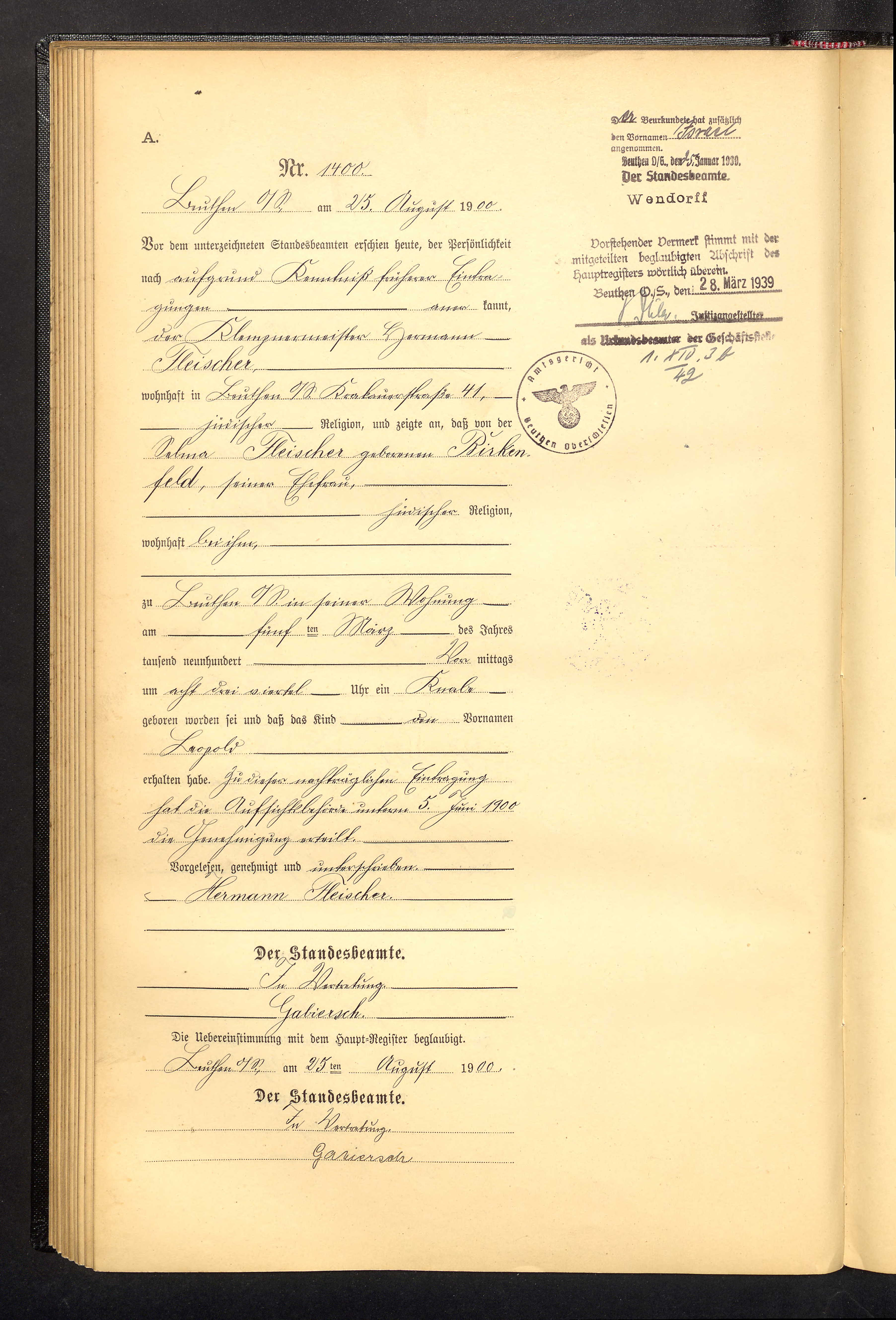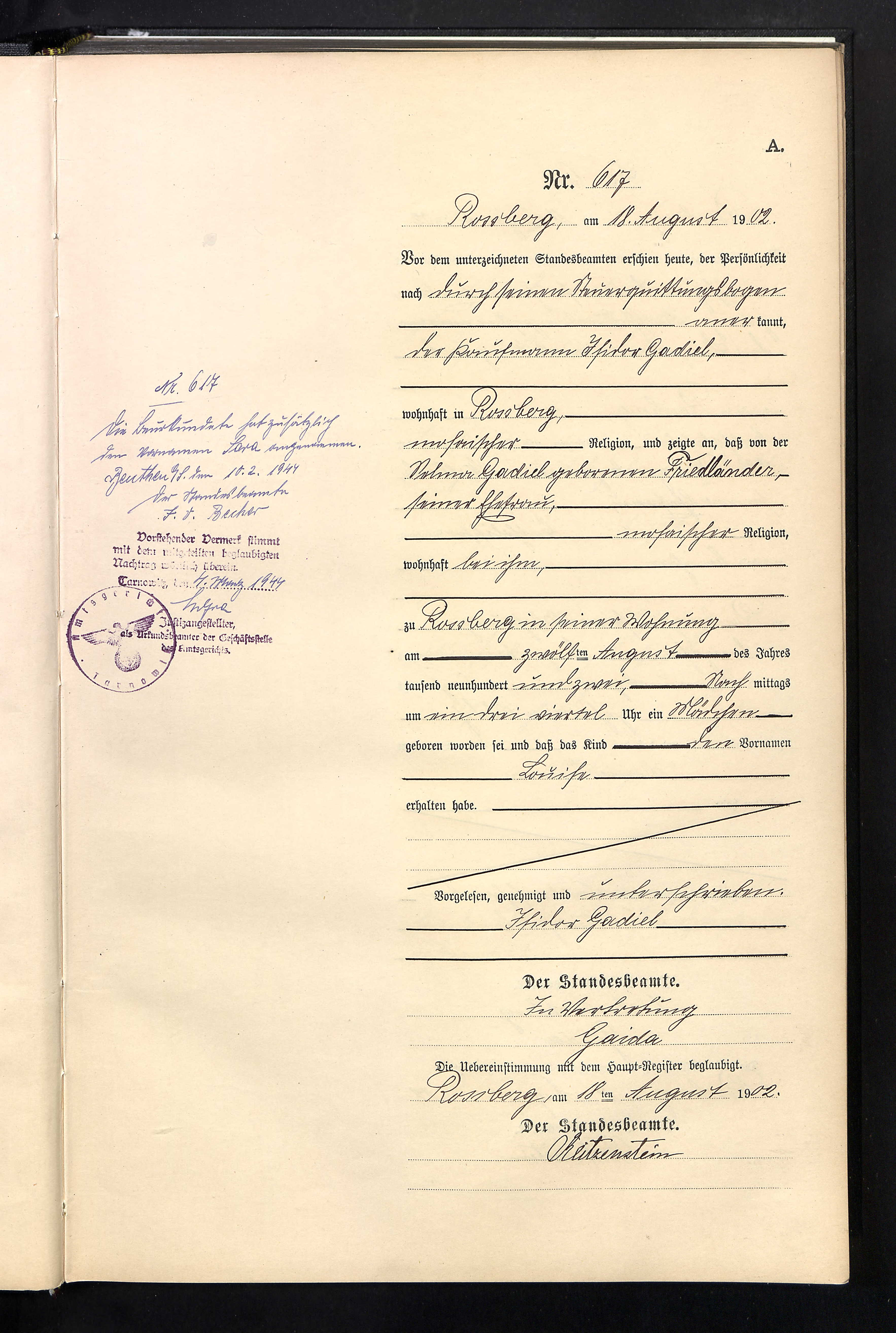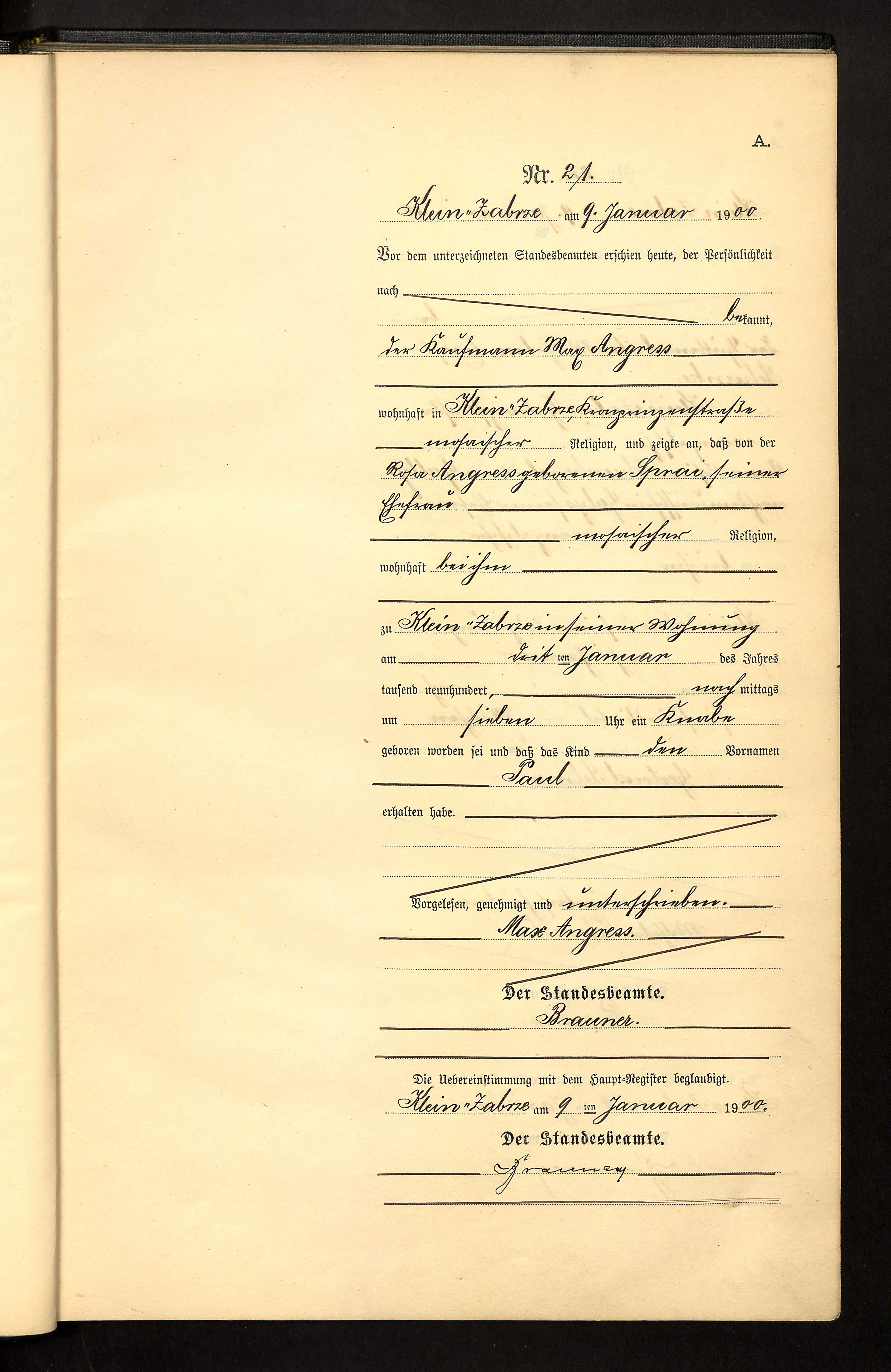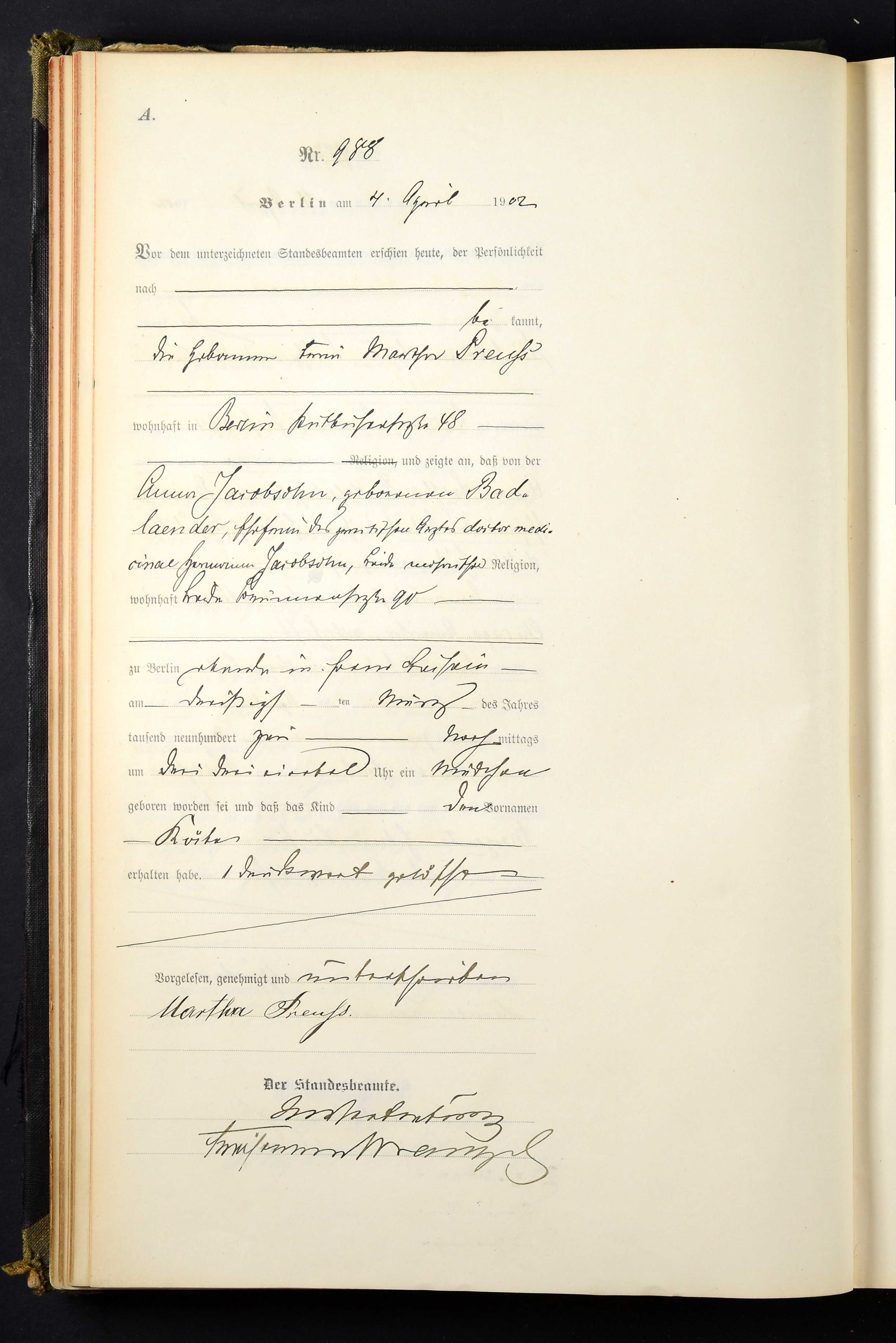 [stillborn son] Nothmann (09.01.1902 – 09.01.1902)