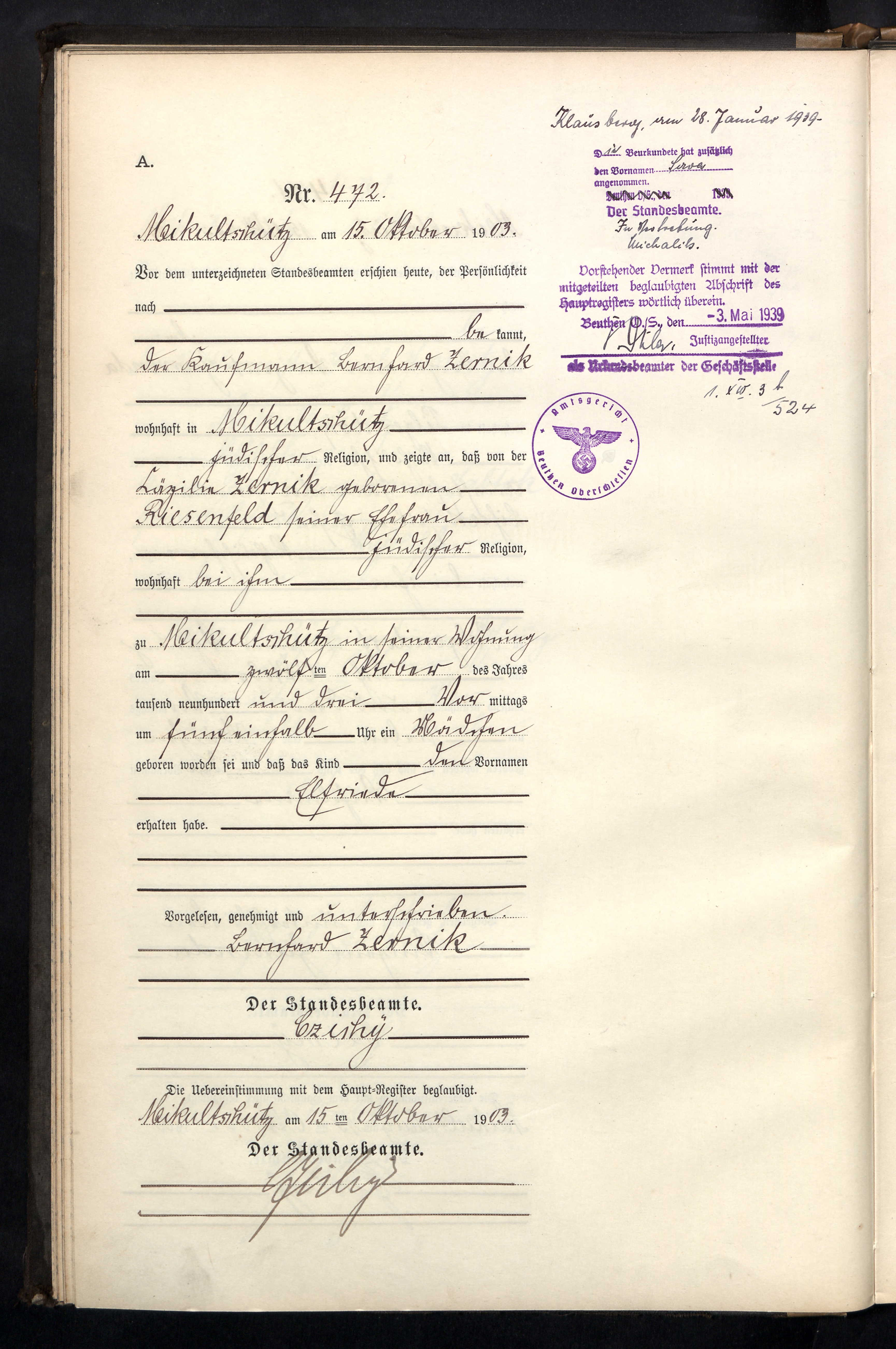 [stillborn son] Flichter (14.01.1909 – 14.01.1909)