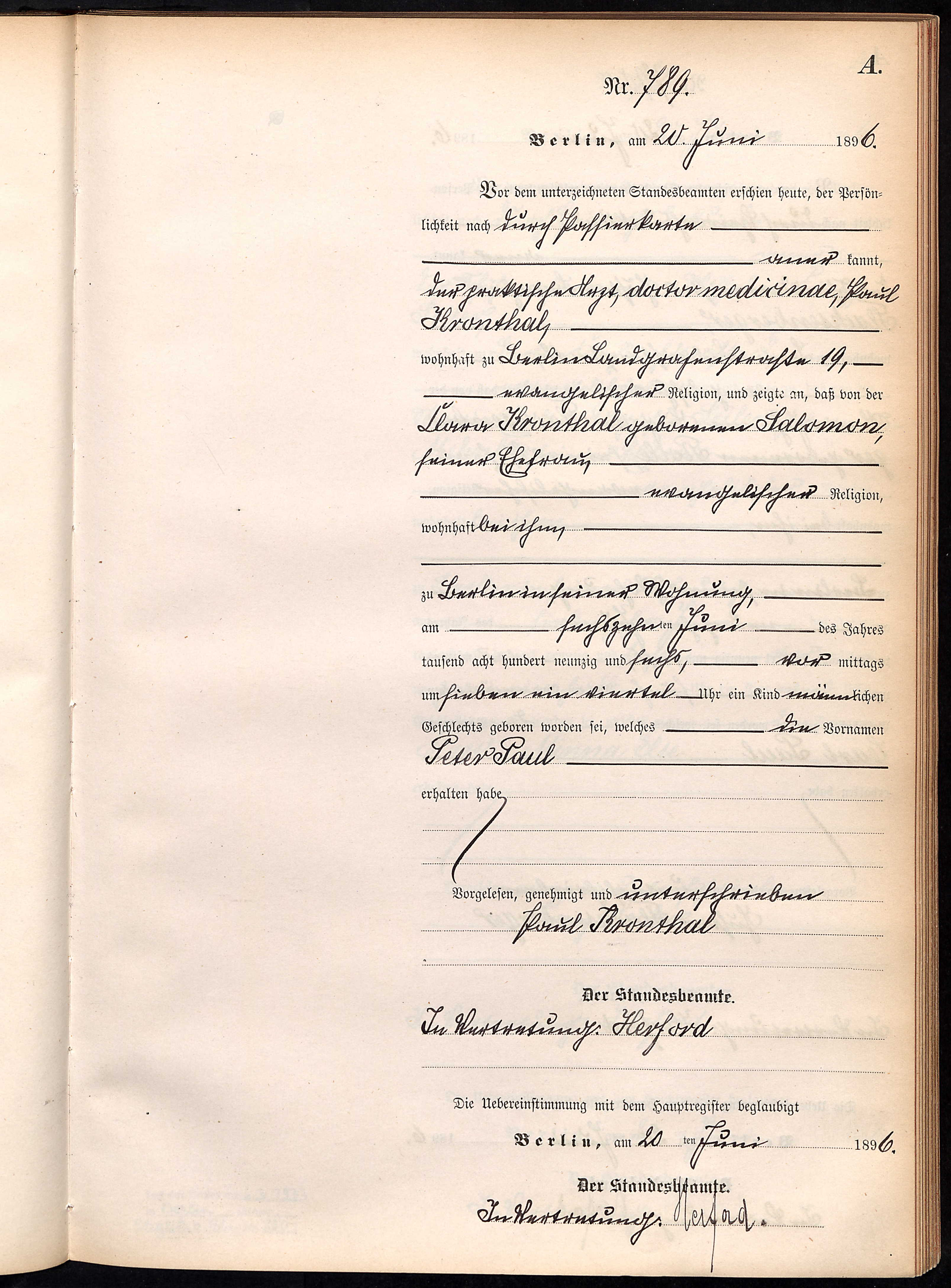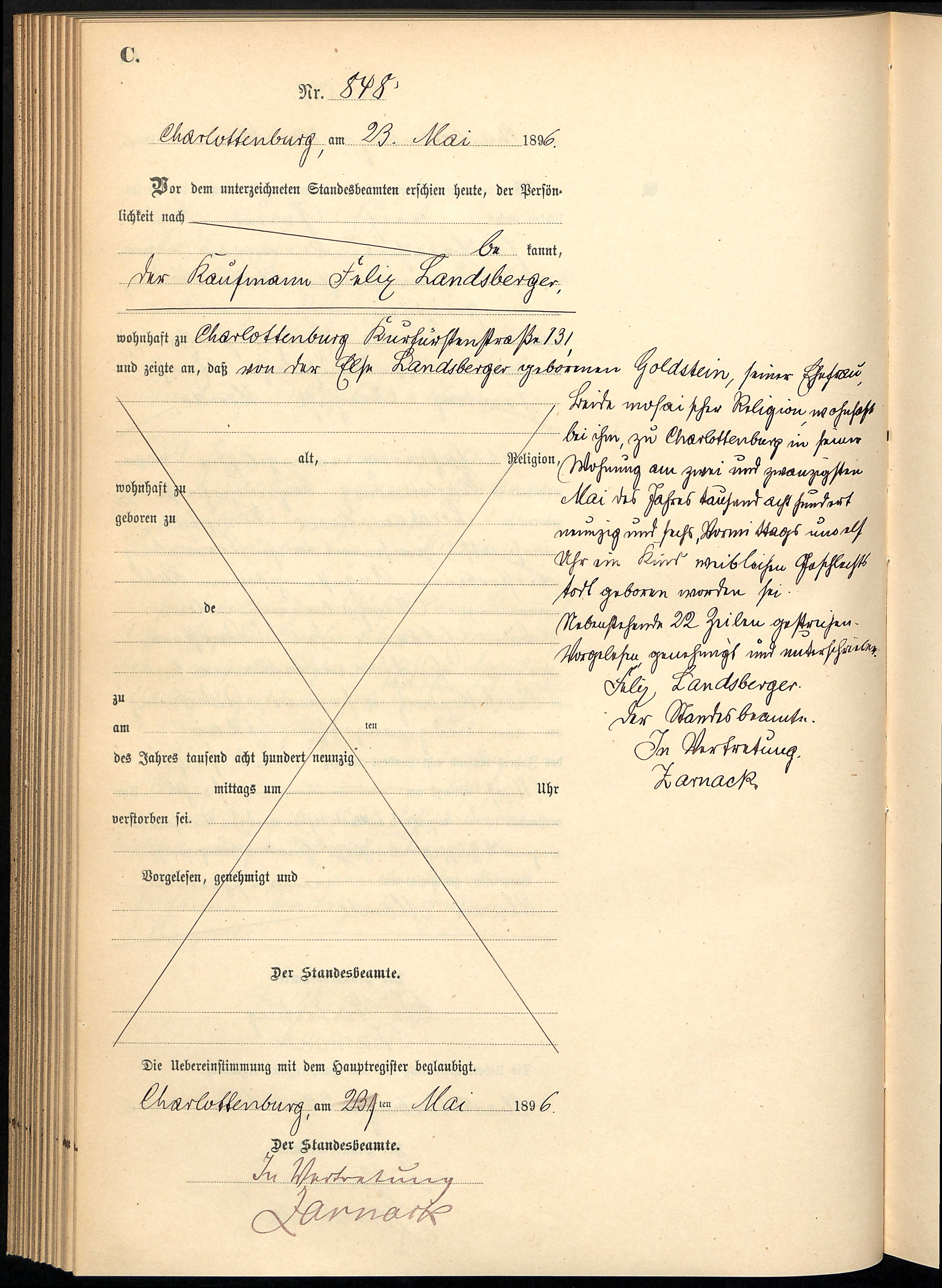 [stillborn daughter] Landsberger (22.05.1896 – 22.05.1896)