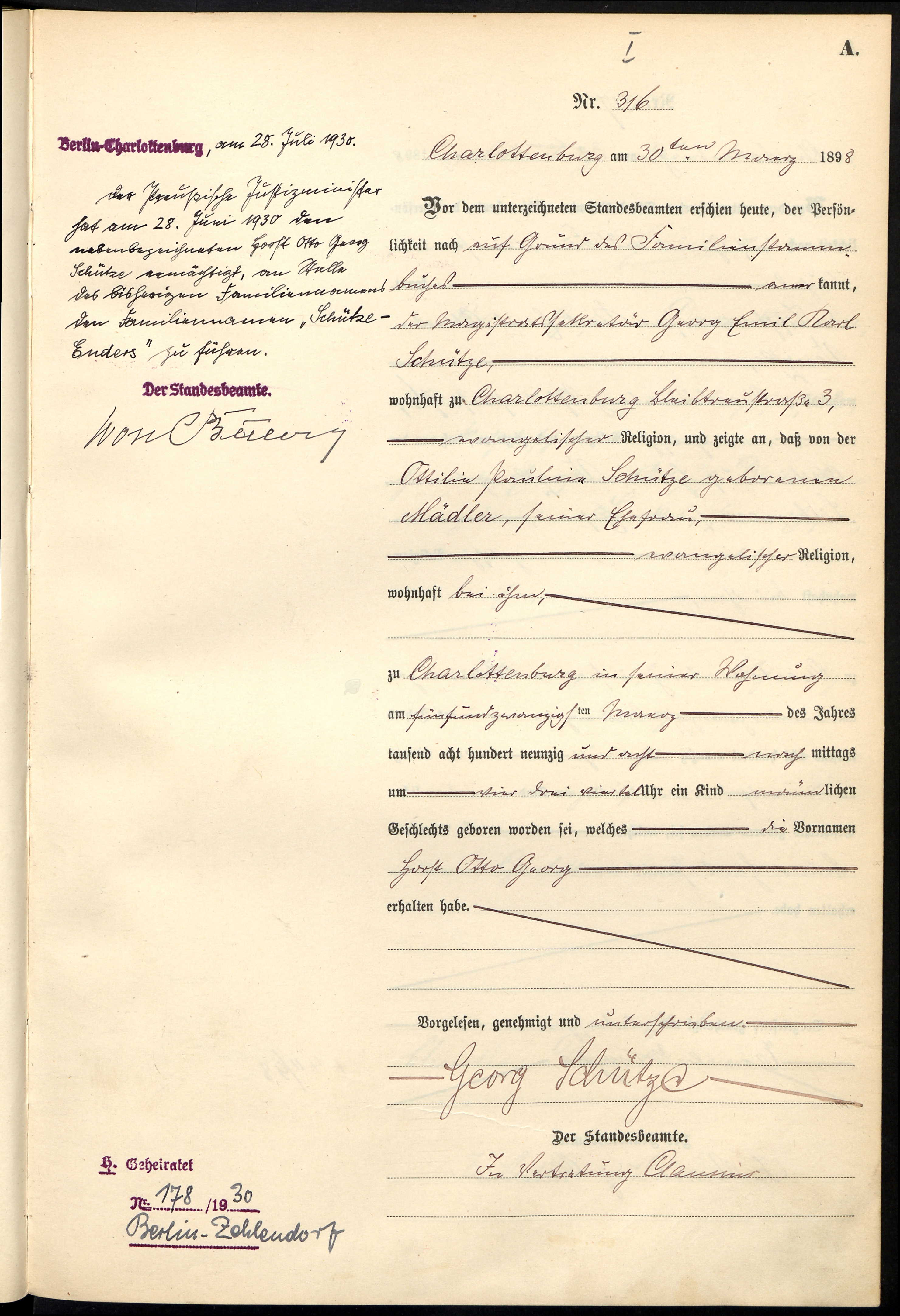 Wilhelm Lothar Siegel (1909 – 21.01.1920)