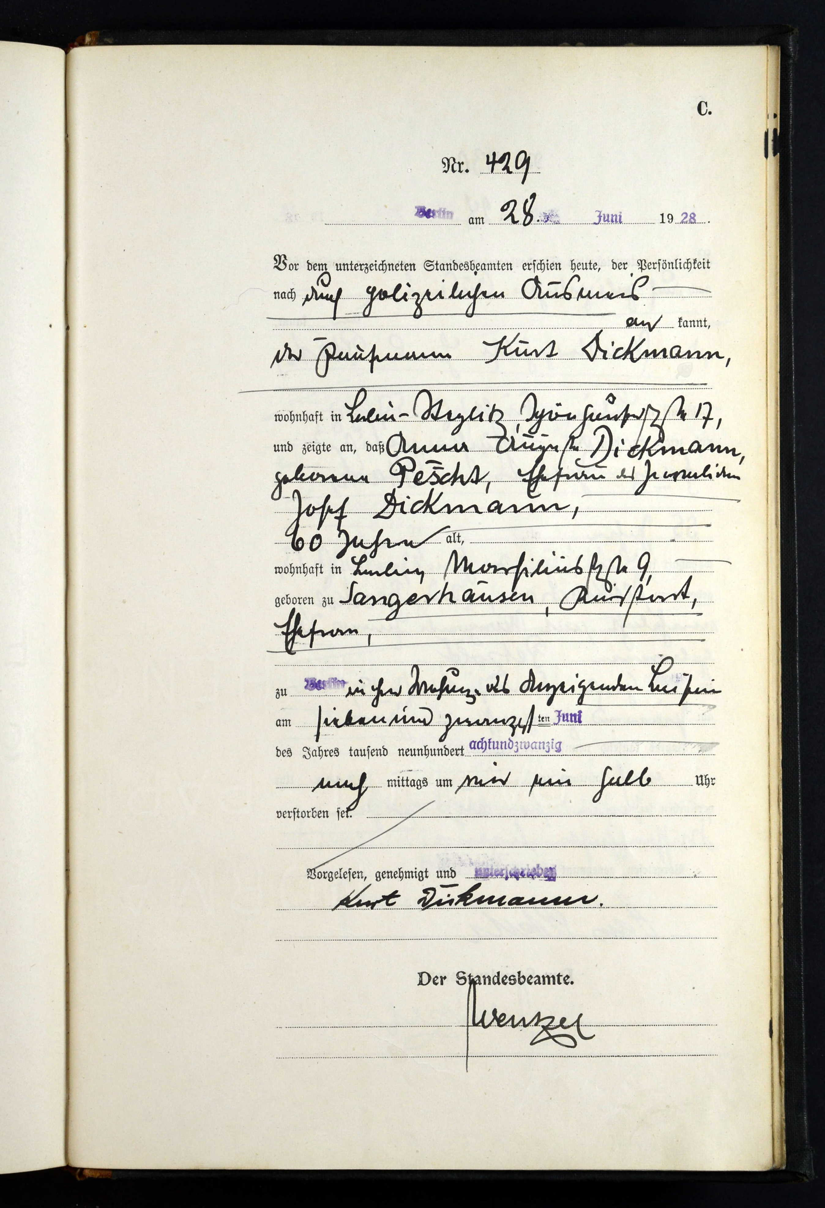 [stillborn daughter] Apt (01.06.1920 – 01.06.1920)