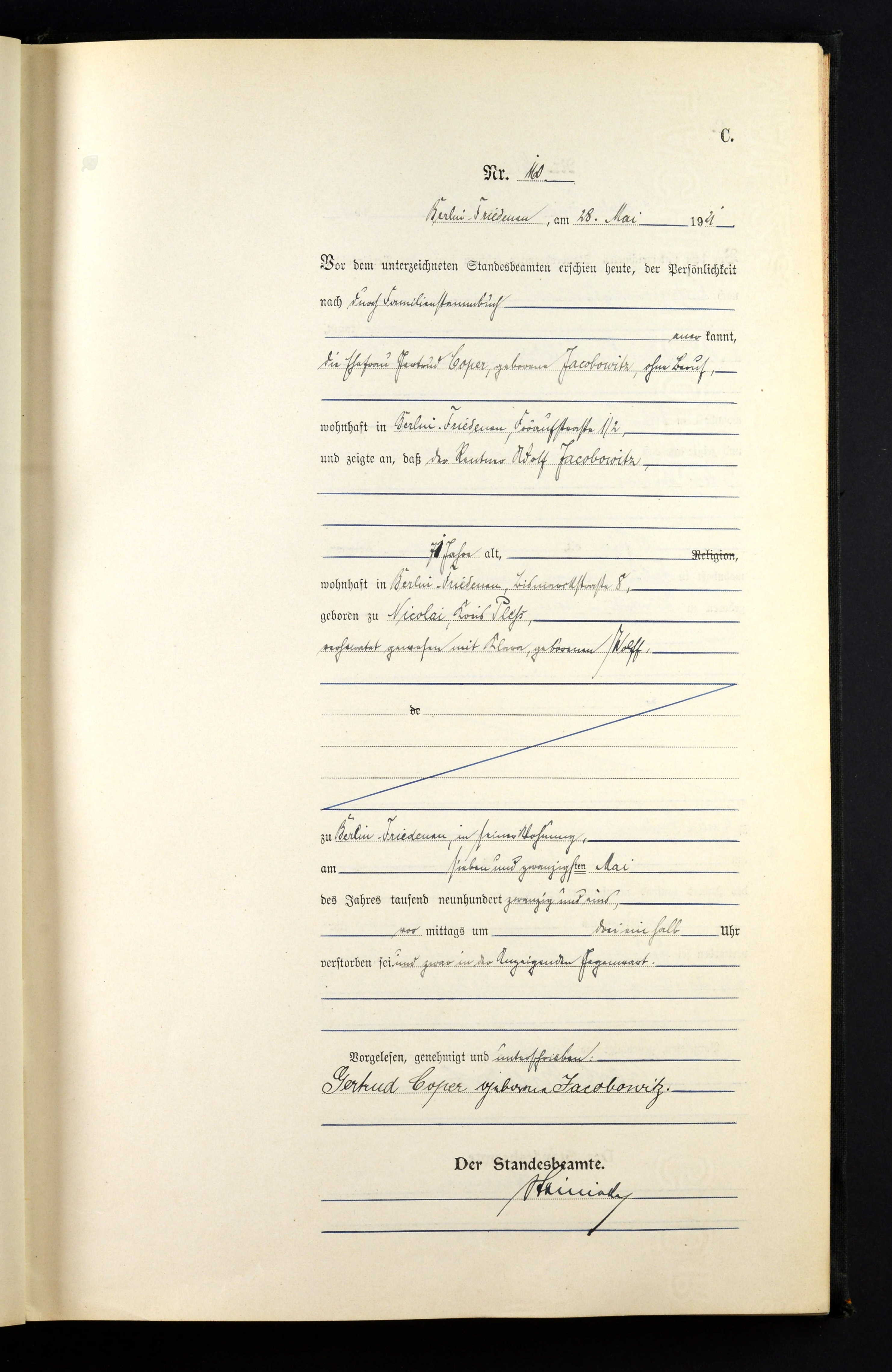 [stillborn son] Pinczower (12.03.1901 – 12.03.1901)