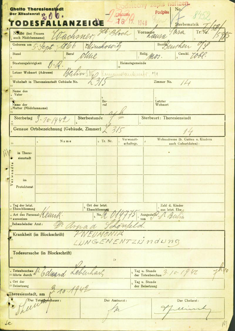 Sophie Wachsner born Weissenberg (09.07.1869 – 17.01.1942)