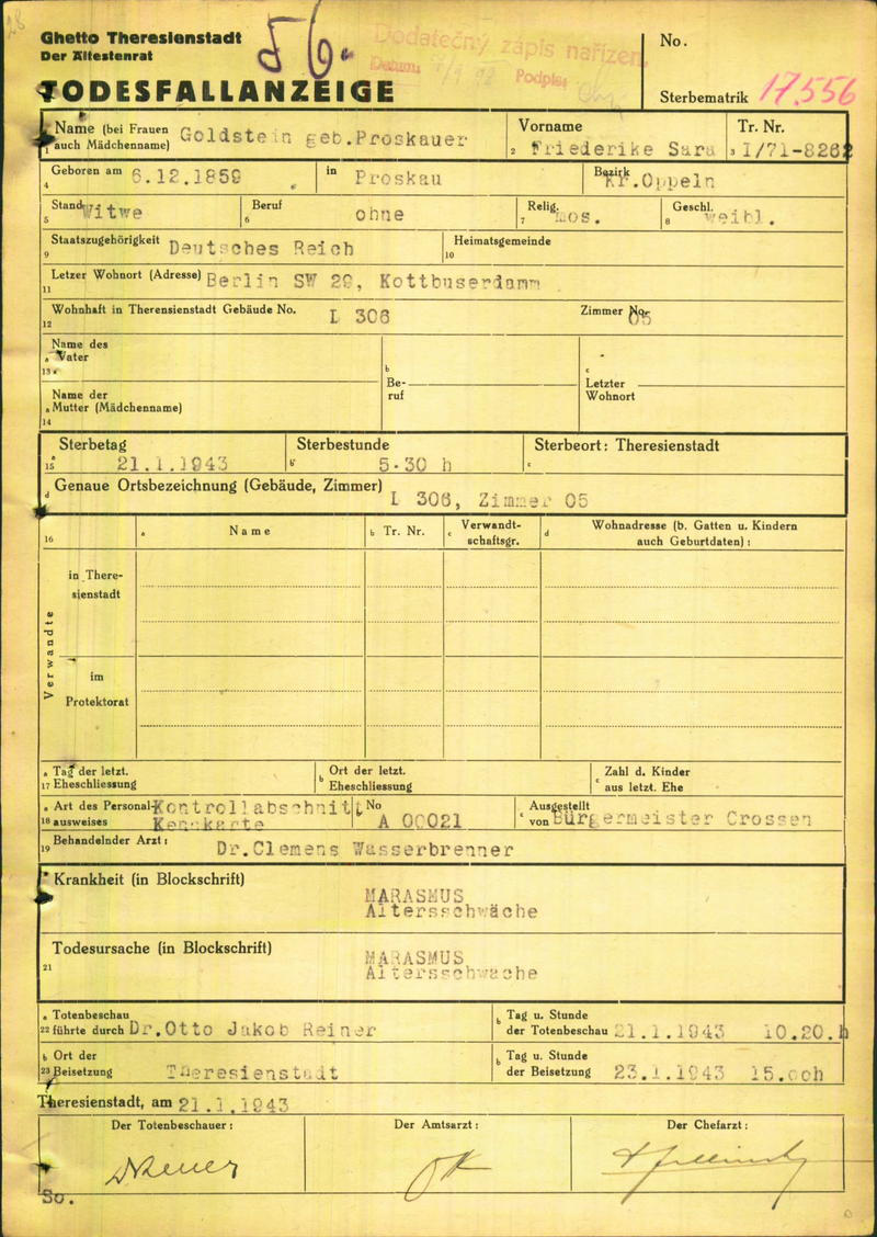 Ulrike (Friederike) Goldstein born Proskauer (06.12.1859 – 21.01.1943)